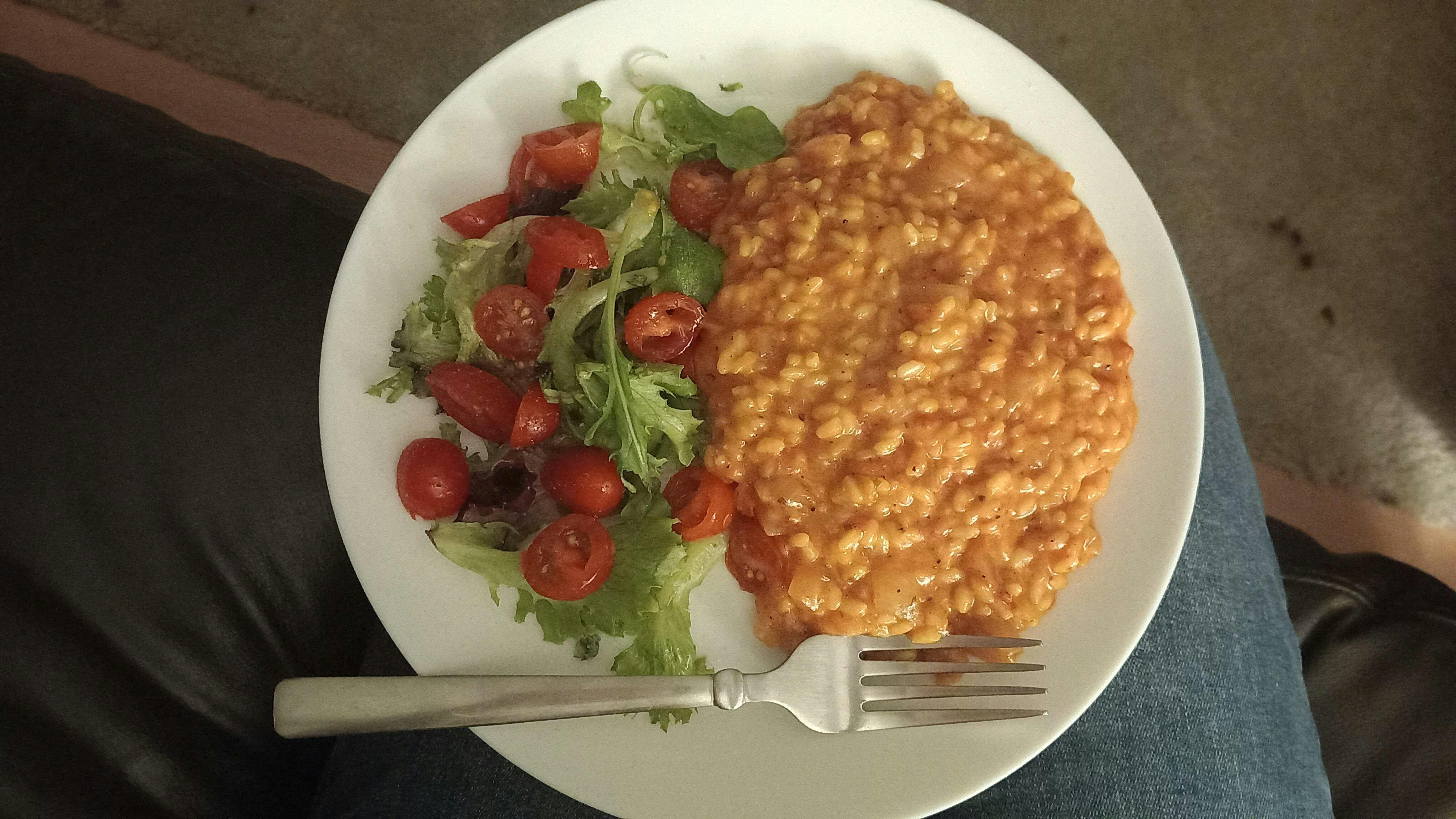 We had the tomato rissotto. We added extra cheese and baked it in che oven as we all enjoy cheese in the house.